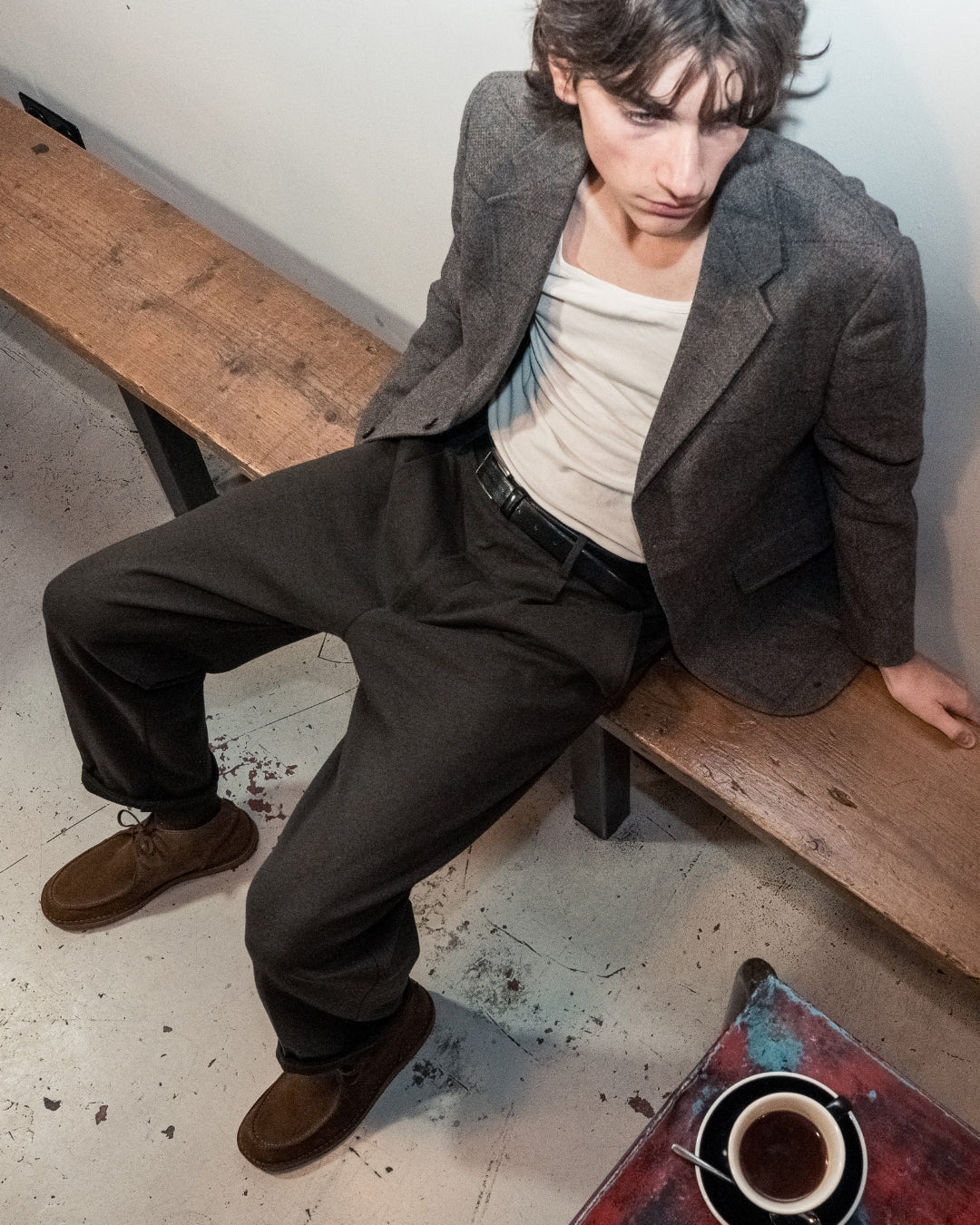 A stitchdown construction with our characteristic butt seam detail and chunky crepe outsole with added cork wedge for additional cushioning and comfort.