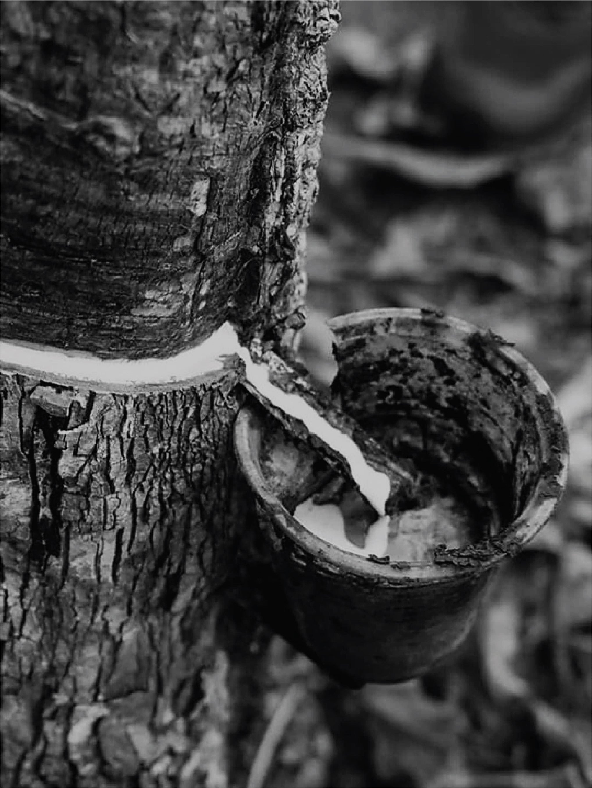 The sap is collected by cutting thin strips of bark from the tree and allowing the latex substance to be tapped.